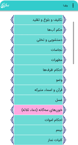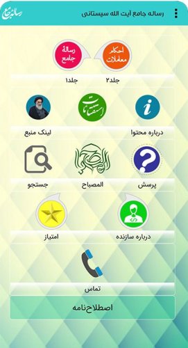 ◙ توضیح المسائل جامع، رساله عملی آیتالله سیستانی(دامتبرکاته) میباشد که علاوه بر متن رساله، استفتائات و مسئلههای پرکاربرد را نیز در خود جای داده است.